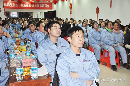 2018年2月8日,恩際集團“恩際生物&千童酒業公司新春團拜會”在三樓會議室舉行,共有200多名員工歡聚一堂,共迎新春.郝茂林總經理代表董事長發表新春賀辭,總裁邸繼澎、運營總監崔連貞送上了新春的祝福。員工武桂巧、張先鋒代表員工向大家拜年,并送上祝福.大家共同回顧2017年一起走過的風雨歷程,共同見證過來一年取得的成績.團拜環節過后,員工表演了豐富多彩的文藝節目和抽獎游戲活動.