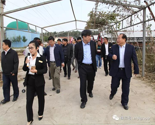 【恩際集團董事長崔軍陪同縣領導及與會人員參觀養殖基地】
